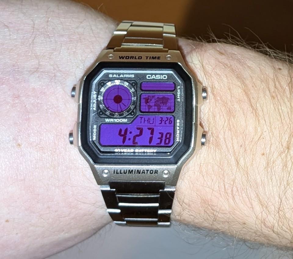 Modified CASIO AE-1200 Watch with Purple Colour Modification. Brand new with box and papers.