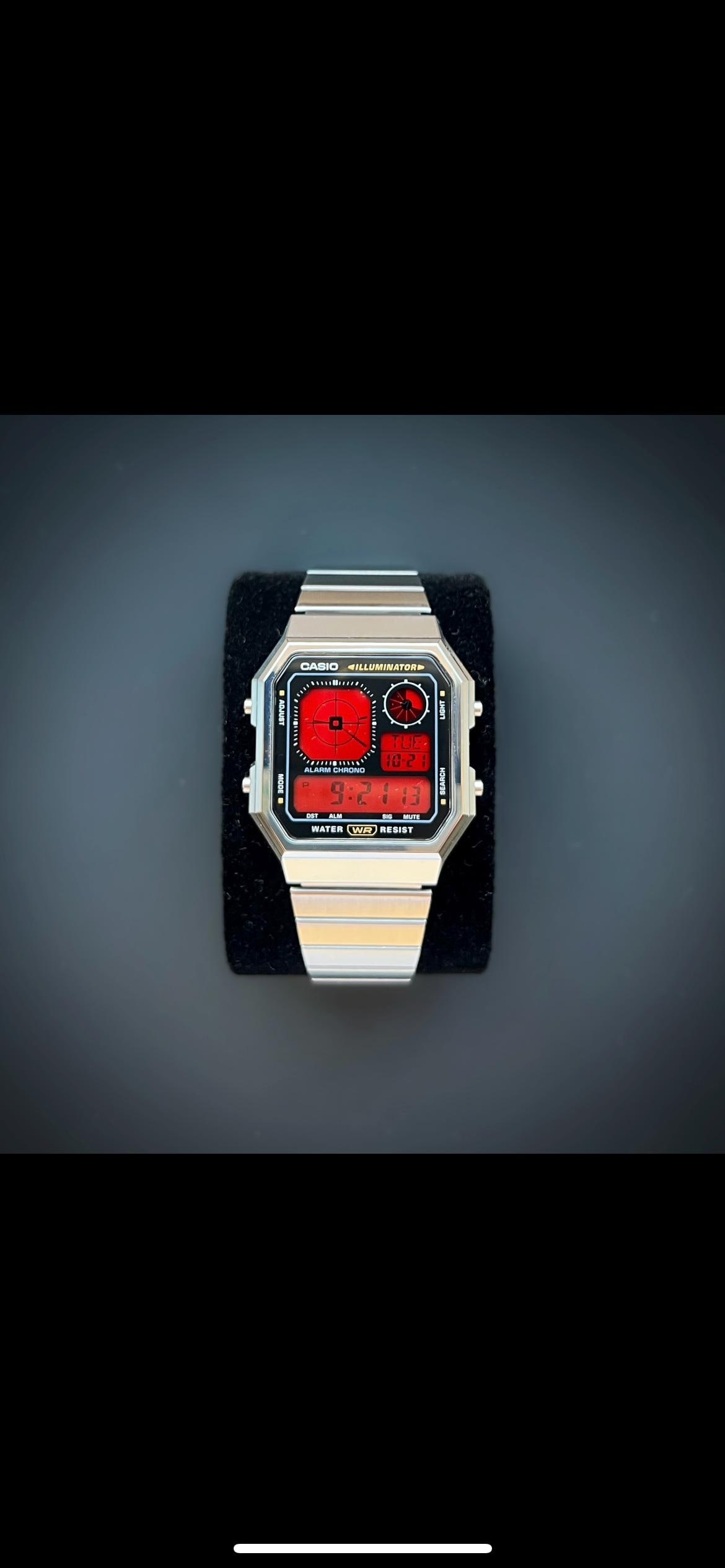 Modified CASIO A130 Watch with Purple Colour Modification. Brand new with box and papers.