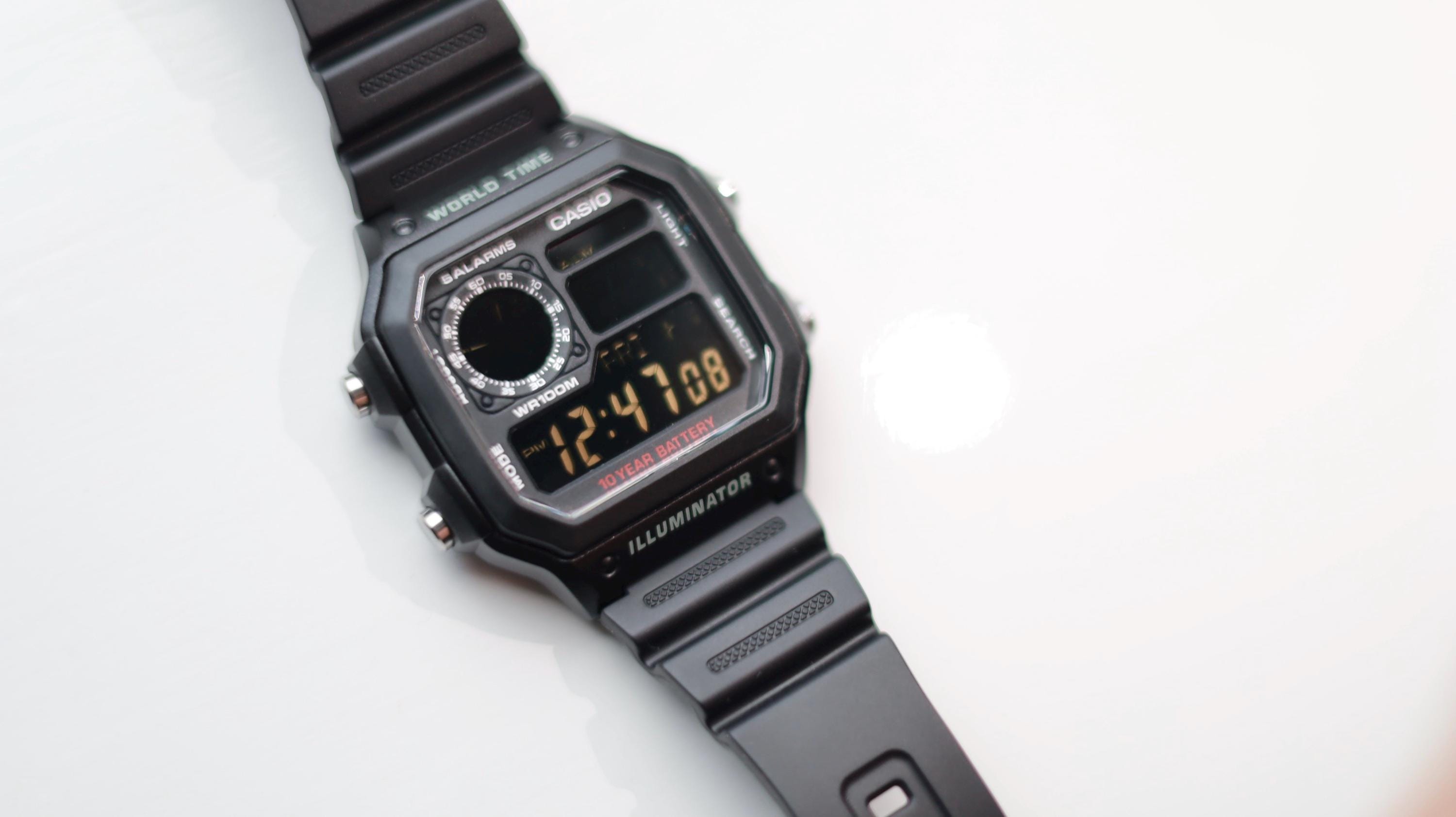 Stealth Black Casio Royale AE-1200 with Photonegative LCD Modification and Black Rubber Strap. Brand New with Box and Papers. This watch has undergone a handmade modification replacing the original light LCD display with a photonegative polarising filter to give the watch a stealthy blackout appearance.